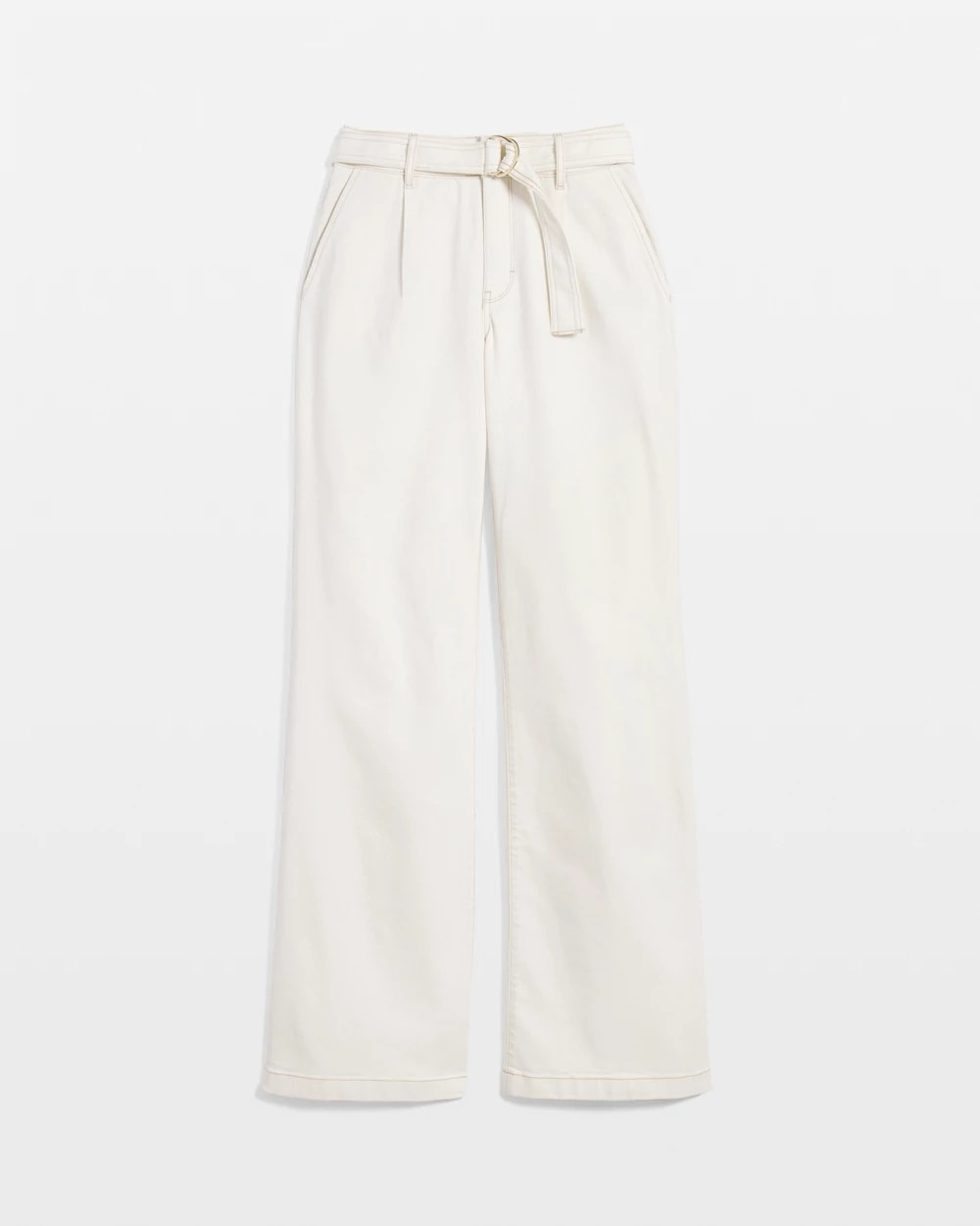 This clean trouser pant has a self-belt, pleats and pockets, giving it a casual yet polished look that works with your favorite shoes or sandals.