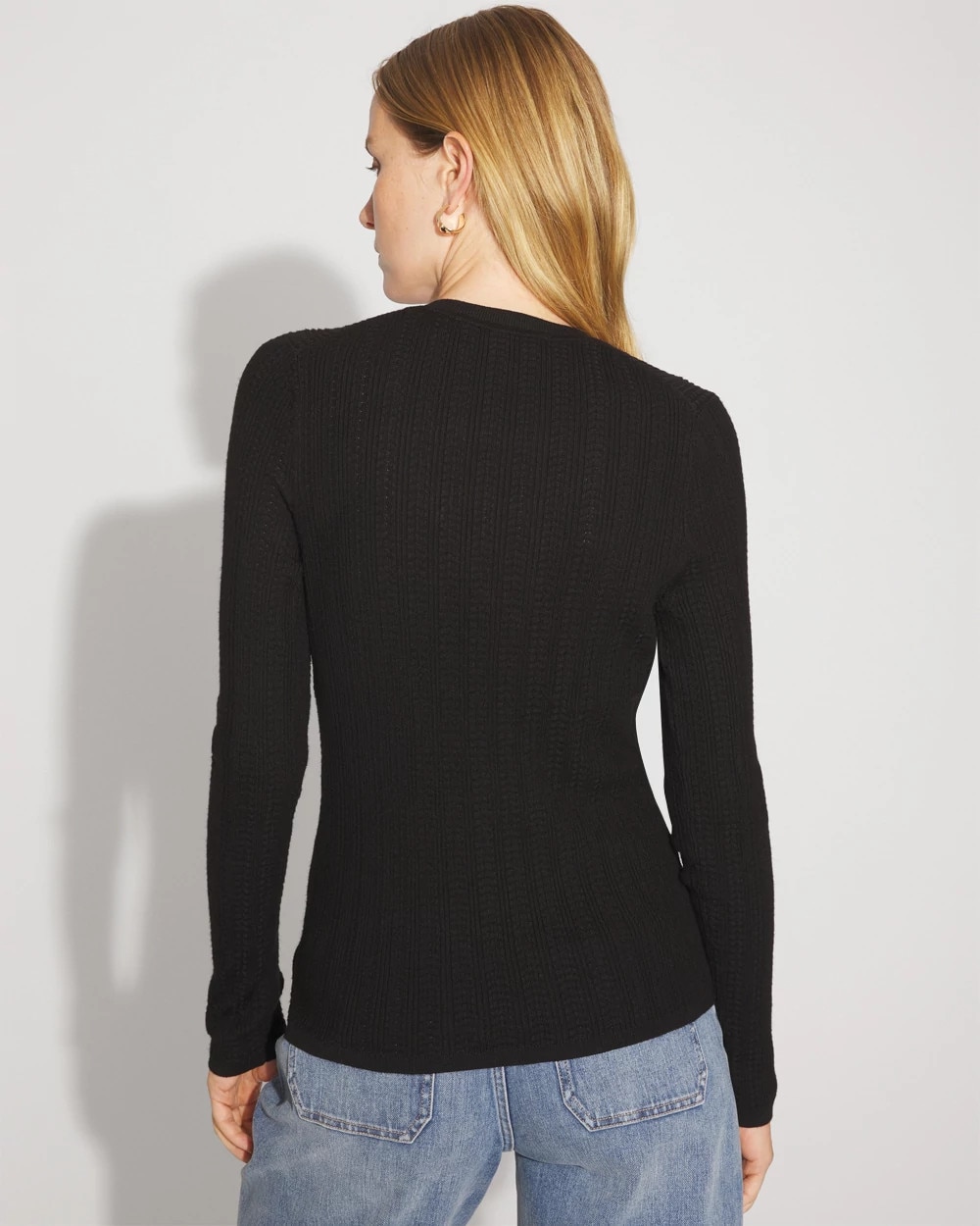 A variegated rib pattern and soft gold buttons elevate this timeless Henley. Wear it with your favorite jeans.
