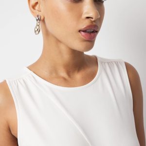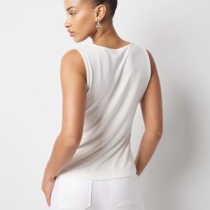 Made from a refined stretch crepe fabric, this fashion tee is gathered at the waist with ring hardware for an elevated look. A dressy tank to layer under a blazer for the office.