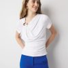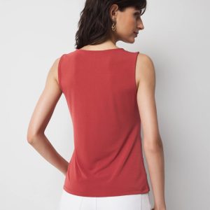 Made from a refined stretch crepe fabric, this fashion tee is gathered at the waist with ring hardware for an elevated look. A dressy tank to layer under a blazer for the office.