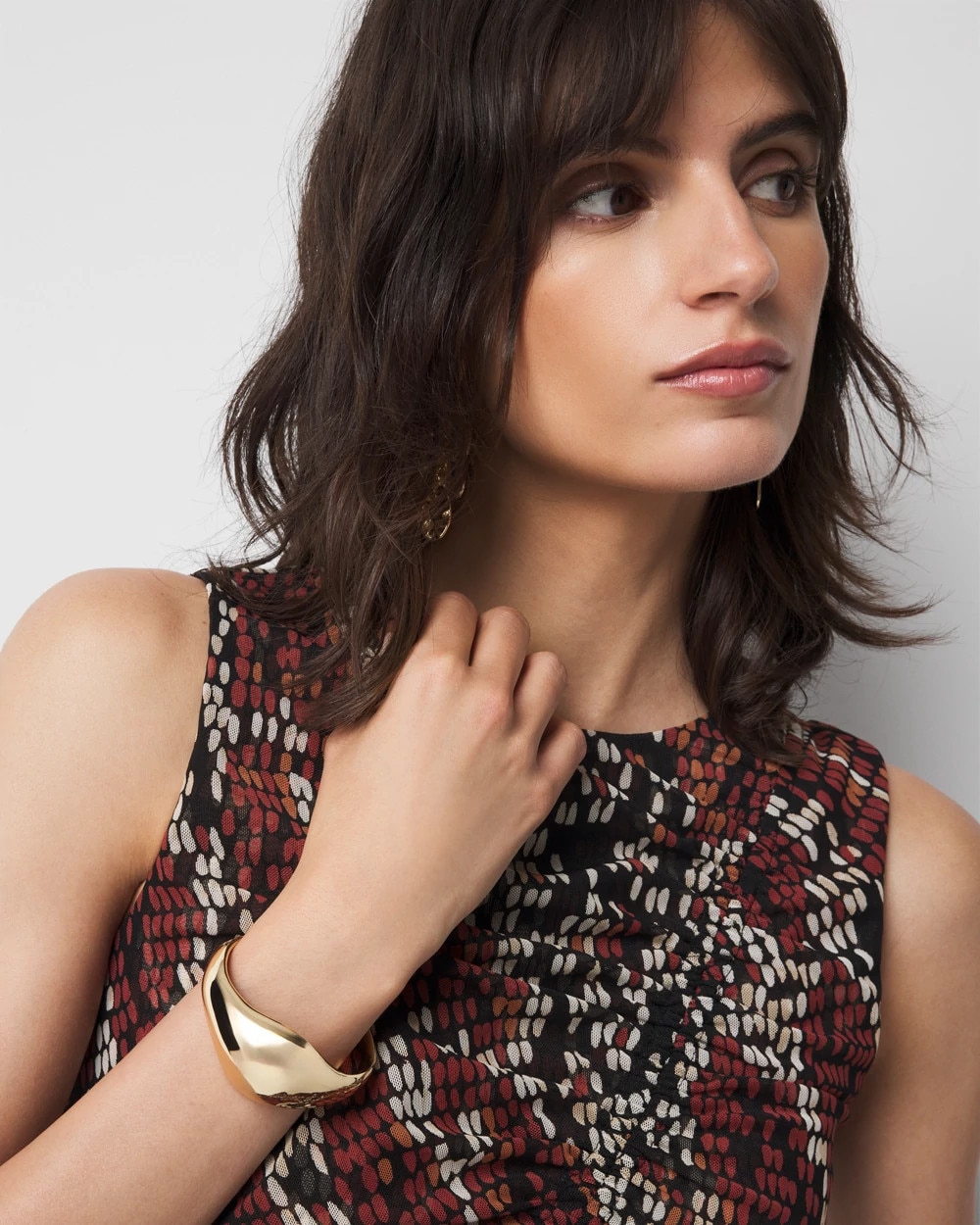 Asymmetric ruching down the front and back give this mesh tank top a fitted + flattering look. It is also lined for coverage.