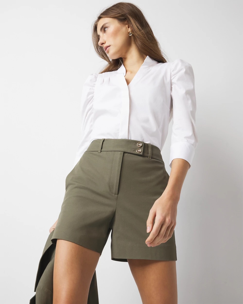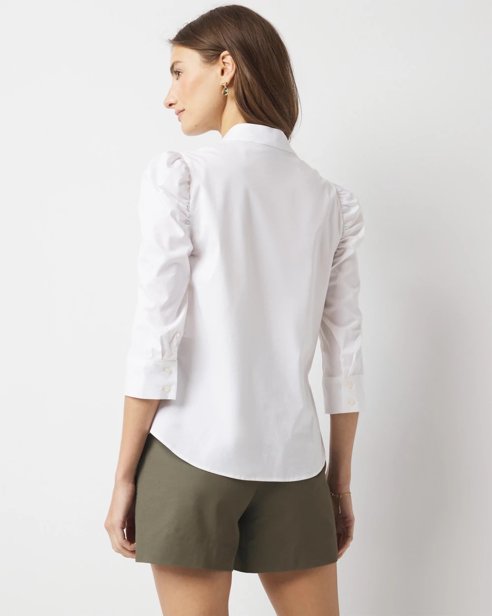 We’ve taken a timeless cotton poplin shirt and re-imagined it as a feminine blouse. Designed with ruched sleeves and Y neckline, it’s a great look to pair with your favorite work pants.