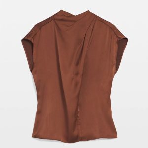 Satin Draped Sleeveless Blouse