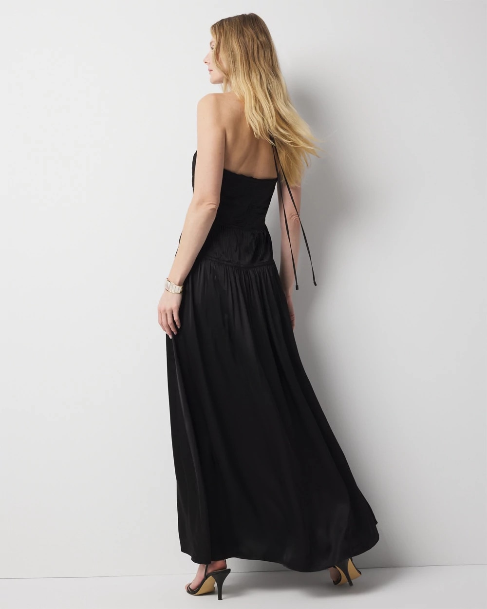 This timeless halter dress is made from satin for a subtle sheen with a stunning floral print that instantly elevates it for special occasions. Designed with pleating at the waist and bust, this halter ties at the back of the neck and is fully adjustable to ensure the fit you want. We’ve also added elastic with silicone at the top edge of the back for stability.