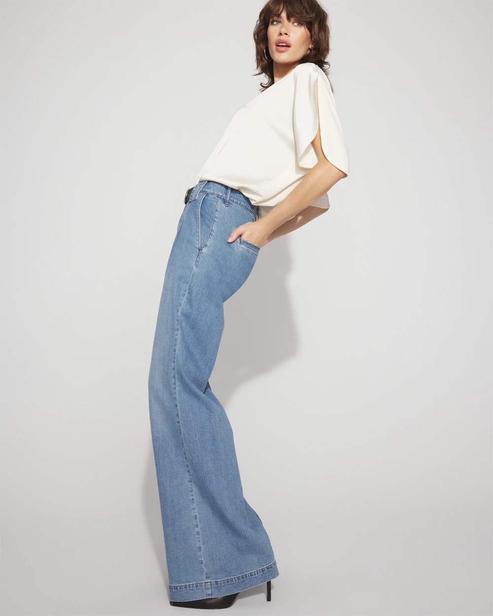 A satin front and jersey back give this top a sleek look and a comfortable + relaxed fit. The sleeves are split to bare some skin, and the neckline has a raw finish. An easy way to dress up denim.