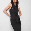 Wear this satin midi dress to your next social event. Designed with spaghetti straps, a chic sculptural metal piece in the center of the V-neck and a side slit, it’s a look that’s ready for a party.