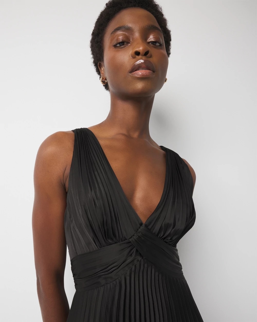 Satin Pleated Midi Dress