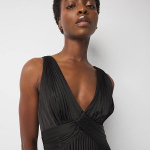 Satin Pleated Midi Dress