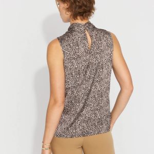 Our sleeveless shells are a workwear fan favorite; this latest edition is made from sleek satin with a twist neck detail. Wear this top under jackets and blazers for a polished look.