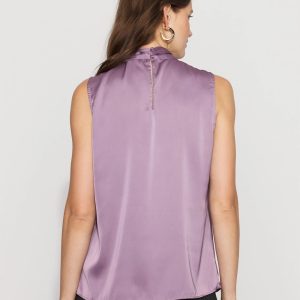 Our sleeveless shells are a workwear fan favorite; this latest edition is made from sleek satin with a twist neck detail. Wear this top under jackets and blazers for a polished look.