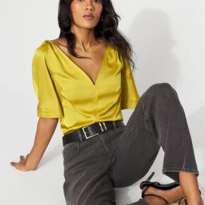 Satin Twist-Shoulder Top