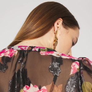 Sheer Metallic Clip Ruffle Blouse