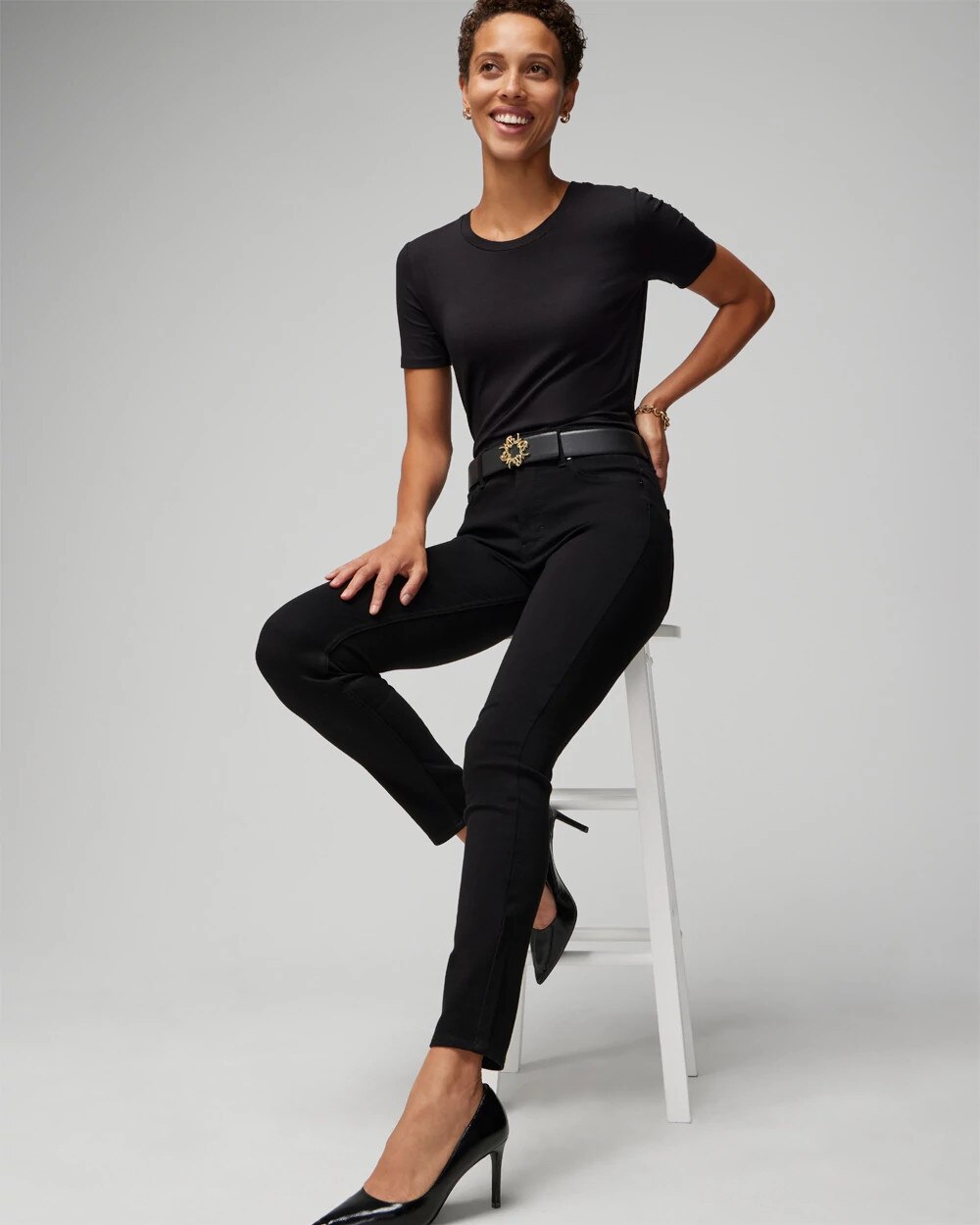 A great classic tee is a must in any wardrobe. This short-sleeve crewneck tee fills that need fabulously with its perfect fit and soft comfort. The fitted silhouette makes this short-sleeve tee flattering on its own with a pair of jeans or as a sleek, smooth layering piece under jackets and sweaters.