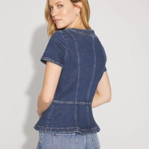 Short-Sleeve Peplum Jean Jacket