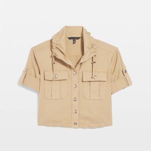 We’ve designed a short-sleeve version of our Pret relaxed utility jacket for cool summer nights. Two oversized cargo pockets on the front with buttons, shoulder epaulets, tabs on the cuffs and a high funnel collar give this casual jacket extra style. A drawstring at the waist and neck allows you to cinch as relaxed or tight as you wish.