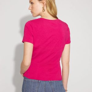 With a subtle peplum flare, the Short Sleeve Seamed Peplum Tee is one to keep on rotation all season long. The crew neckline and form-fitting silhouette, make it an elevated tee, great for the office and weekends away.
