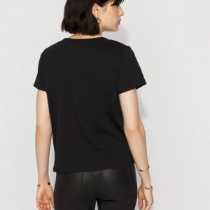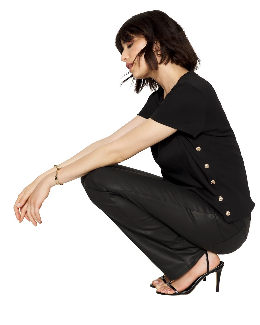 Five gold crest buttons add extra style to our timeless cotton crewneck tee. This top will instantly elevate your denim.