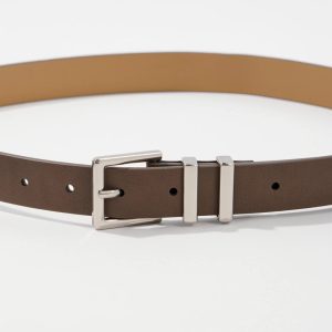 Silver Buckle Taupe Pant Belt