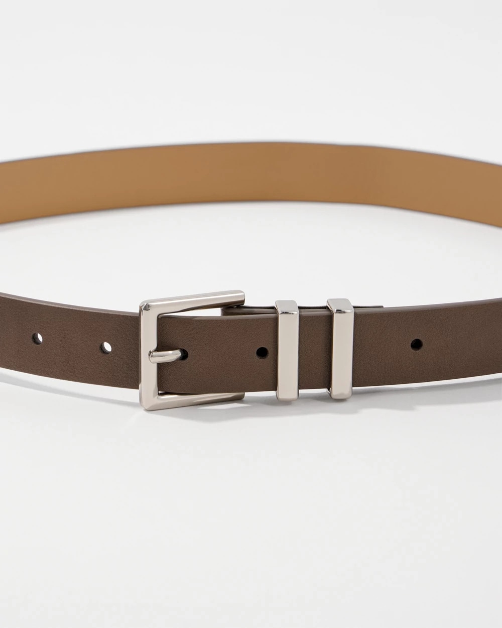 Silver Buckle Taupe Pant Belt