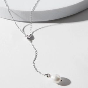 Our Silver Fresh Water Pearl Drop Necklace features a single baroque pearl hanging on a gorgeous dainty chain. This is a very fashionable and special occassion necklace to be worn to fancy events.