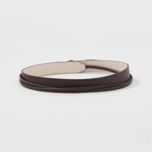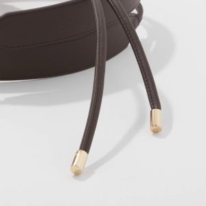 A thinner version of our fan favorite Obi belt, it has metal tips and an on-trend chocolate brown color. Made from faux leather.