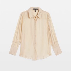 We’ve combined our bestselling soft shirt with the current shine trend and crafted this beauty from a sheer fabric with gold sheen. A luxurious + stylish shirt with shirring at the shoulders and cuffs, perfect to pair with WHBM FORME™ or your favorite cami.
