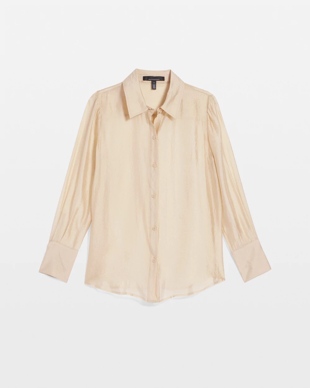 We’ve combined our bestselling soft shirt with the current shine trend and crafted this beauty from a sheer fabric with gold sheen. A luxurious + stylish shirt with shirring at the shoulders and cuffs, perfect to pair with WHBM FORME™ or your favorite cami.