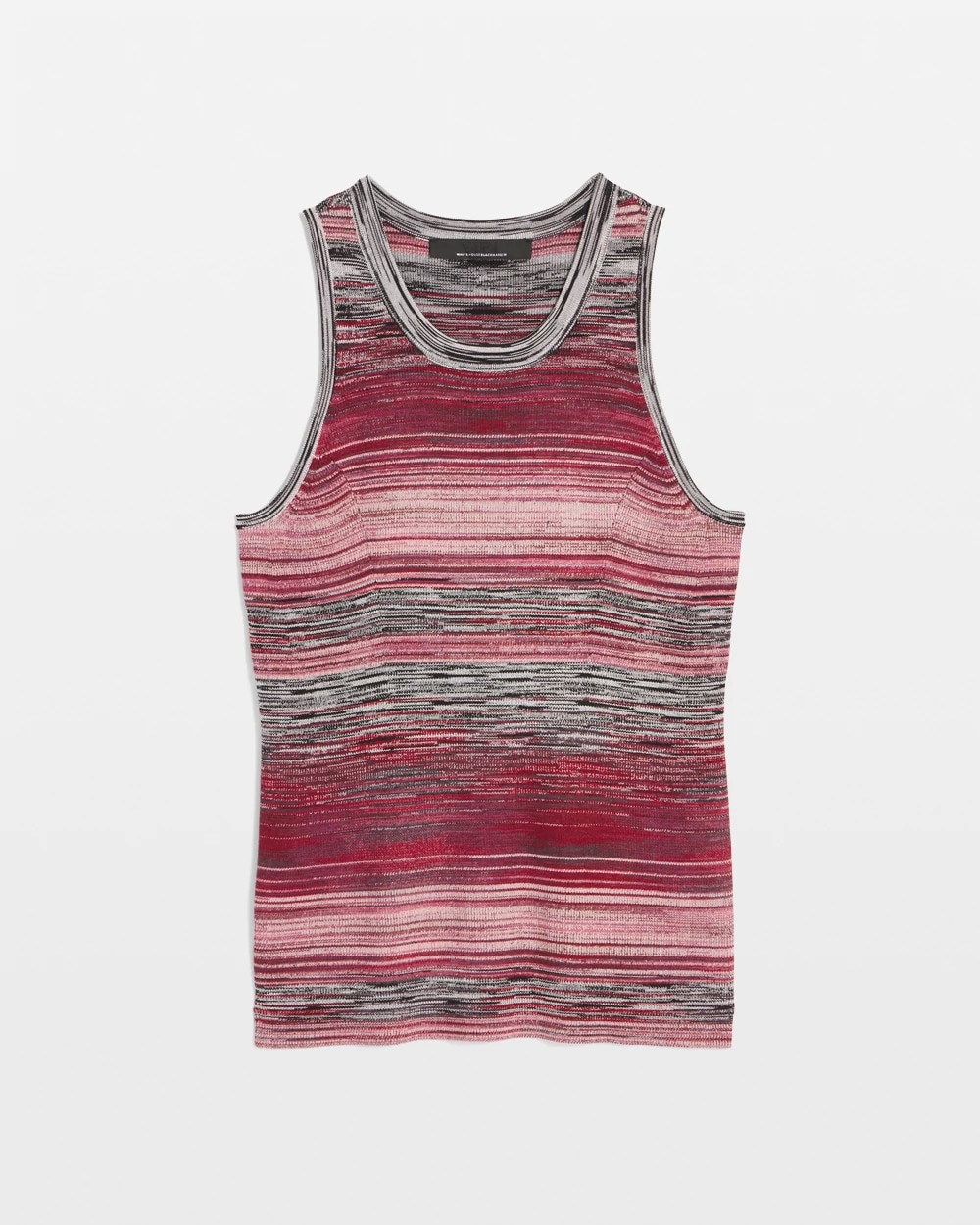 Crafted from space-dyed yarn to create a multi-colored pattern, this crewneck sweater tank top is an easy, stylish option for jeans and shorts. Add the matching Cap Sleeve Space-Dyed Cardigan for a chic twin-set look.