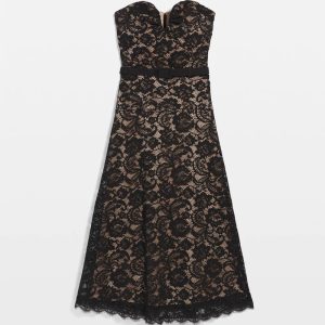We designed this occasion dress for a big night out, that’s why it has a bustier top complete with boning for support, a self-belt for shaping and allover lace for a touch of elegance.