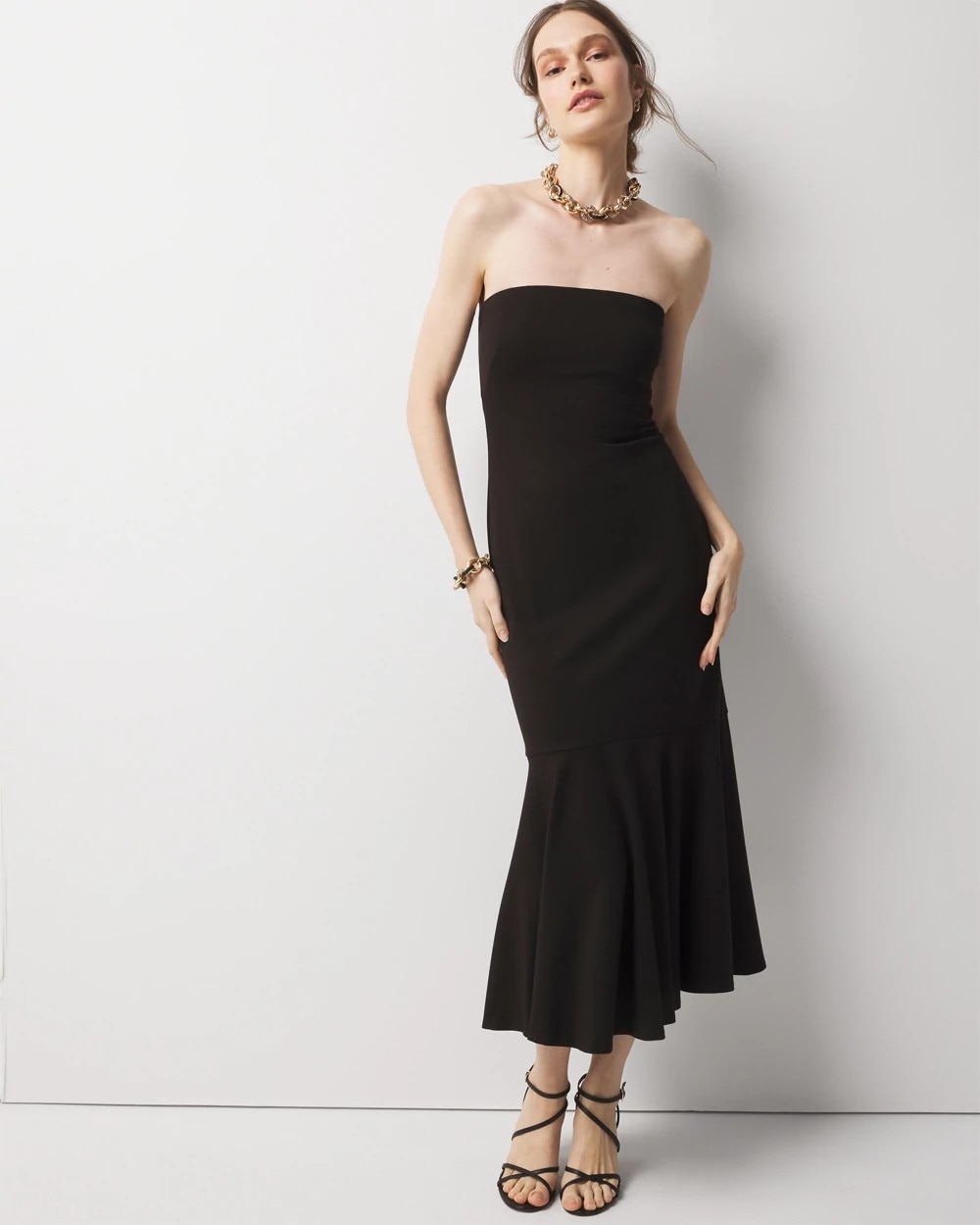 This strapless tube top dress has a flirty flounce skirt, we believe its simplicity will make this your new fave LBD. We also added princess darts at the back to ensure a flattering fit. Pair with heels or strappy sandals.