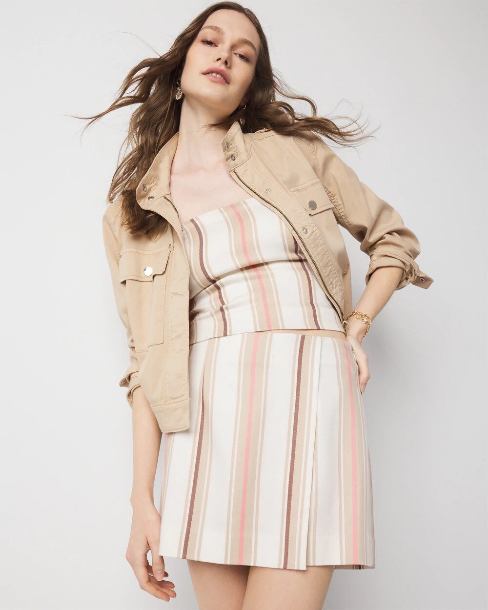 The multi-colored stripes on this sporty skort liven up the look. Made from lyocell a lightweight fabric that’s ideal for summer temps. Pair it with our matching Striped Spaghetti Strap Top for head-to-toe chic.