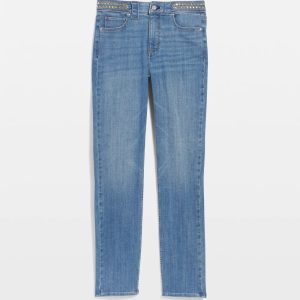 Waist tabs embellished with studs give these cropped high-rise slim jeans a faux belt look that’s perfect for summer adventure.