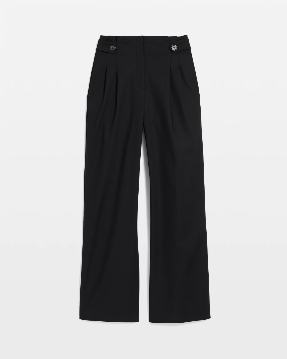 A wide-leg silhouette with a modest paper-bag waist and button tabs defines your figure. Cut from a cotton fabric that holds its shape, these pants have front pleats, pockets and a slightly shorter inseam which makes them easy to pair with a variety of footwear.
