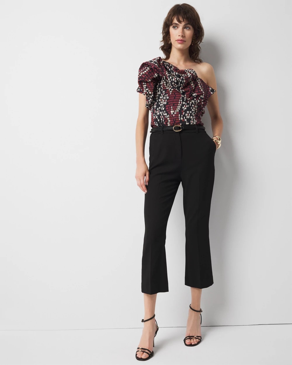 Our fan-favorite kick flare silhouette, now in a tailored pant. Crafted from a textured fabric that has some stretch, these modern work pants will easily transition from office to dinner. Accessorize with a waist belt and heels.