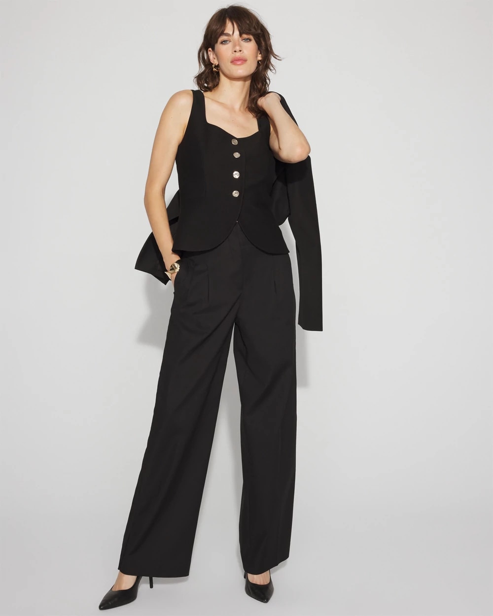 Crafted from a soft twill fabric, this vest has a tailored finish thanks to seaming details that define you and a four-button closure. The waist has a slight cutaway for a flattering fit. Wear it on its own or over a shirt.