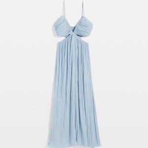 Heat up your social calendar with this sexy dress designed with waist cutouts and a plunging neckline. Made from a washed satin fabric with a slightly pleated look that softens the look, it’s a feminine style that ensures you’ll make an entrance.