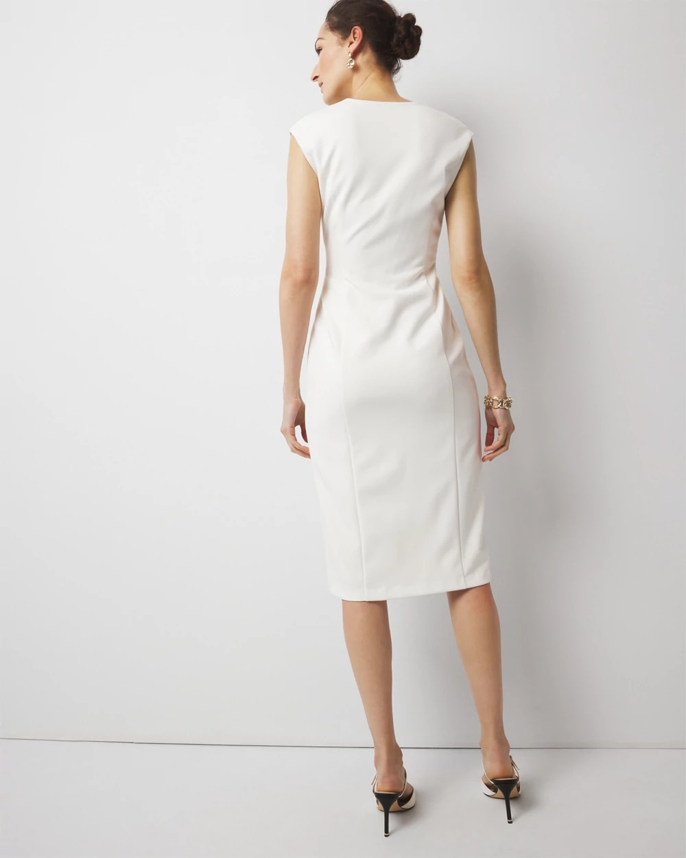 This classic sheath dress is designed to give you a professional + polished look for the office. A twist of fabric at the waist accentuates your figure, and we’ve also added darts for shaping at the front and back. A 12” front slit gives you a touch of sass. Pair with flats or heels and top with a blazer for working girl style.