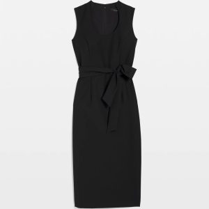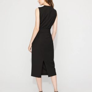 Sleek, smart and tailored to flatter. This sleeveless midi-length sheath is crafted in comfort stretch fabric with a waist-defining belt. The U-neckline offers a fresh take on a classic, while a back vent ensures it moves with you.