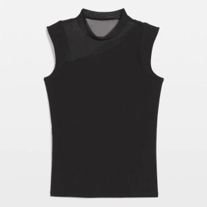 Our latest piece in the WHBM FORME™ collection, this mock neck tank top has an asymmetric mesh inset in the front and back yoke. This top is an easy way to add a fashion element to your work wardrobe, simply add a blazer. Made from our WHBM FORME™ All Ways Stretch fabric that provides flexibility and movement and stretches in all directions.