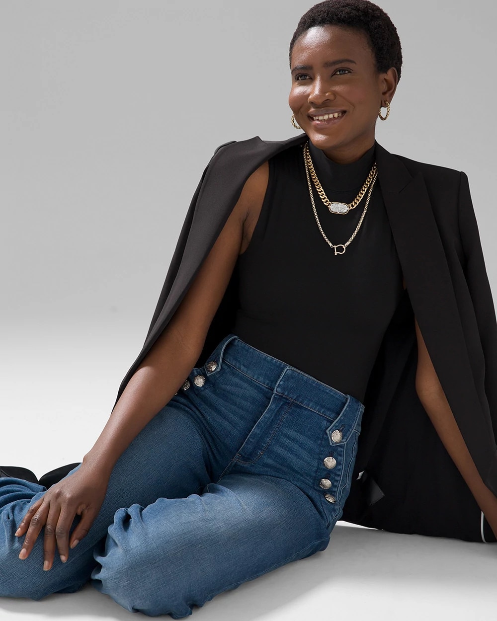 WHBM FORME™ All Ways Stretch provides flexibility and movement with fabric that stretches in all directions. This mock neck tank is an ideal layering piece to wear under a blazer or on its own. Bra clips are sewn into the shoulder for added convenience.