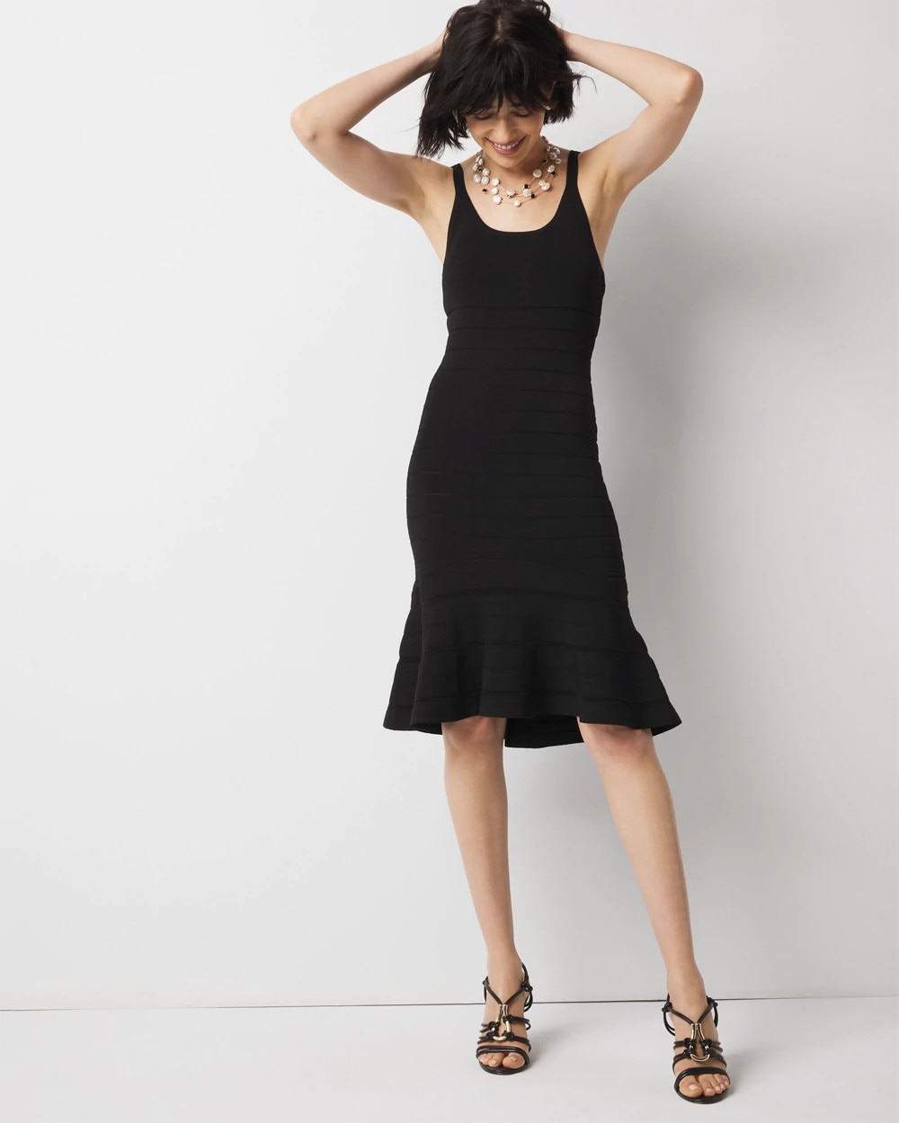Meet our latest dress design in our WHBM FORME™ collection. This bodycon number has a flounce hem and sits just above the knee. An easy dress for layering under a blazer or jean jacket.