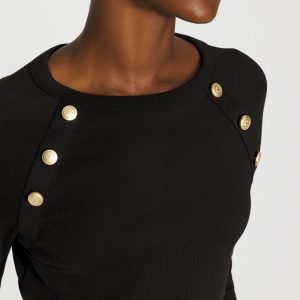 The perfect long-sleeve tee gets a style update with the addition of three gold shank buttons on each sleeve seam. Made with WHBM FORME™ Ribbed Stretch fabric that stretches and smooths your body, offering a flattering silhouette.