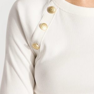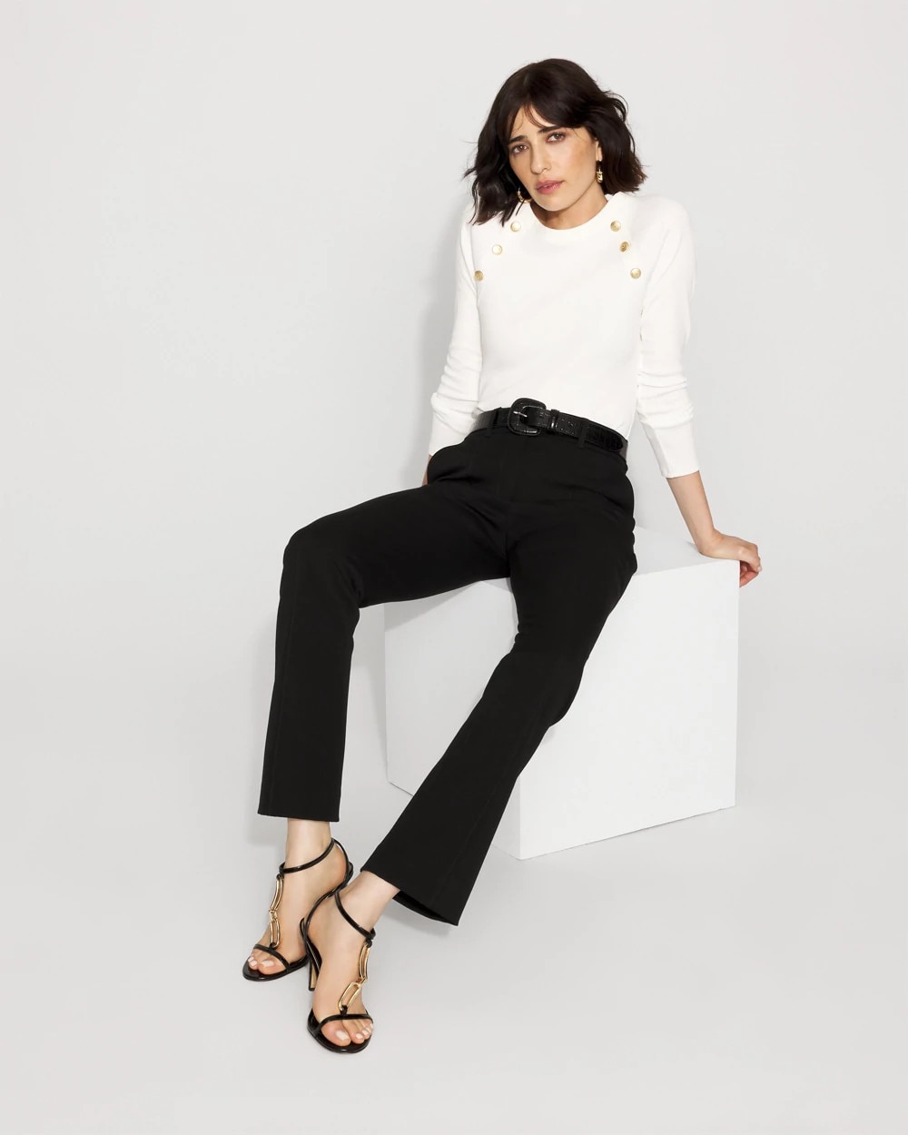 The perfect long-sleeve tee gets a style update with the addition of three gold shank buttons on each sleeve seam. Made with WHBM FORME™ Ribbed Stretch fabric that stretches and smooths your body, offering a flattering silhouette.