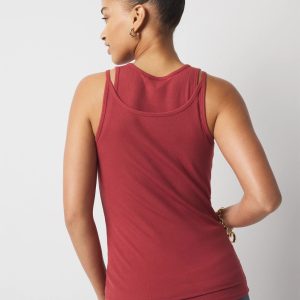 This layered tank top is the newest addition to our WHBM FORME™ collection and contains Tencel, a sustainable, lightweight and soft fabric. Designed as two attached tank tops in one for a layered effect, the bottom tank has a high neck, while the top tank has a scoop neckline. Our WHBM FORME™ ribbed fabric stretches and smooths your body, offering a flattering silhouette.