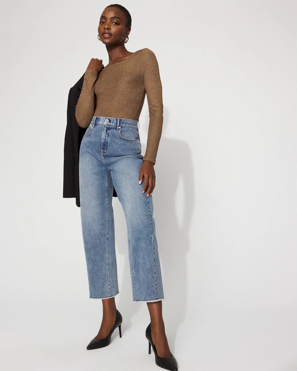 This long-sleeve tee is a great layering piece for under a jacket. Made from WHBM FORME™ Ribbed Stretch fabric, that stretches and smooths your body, offering a flattering silhouette, it also has a metallic shine to elevate the look.