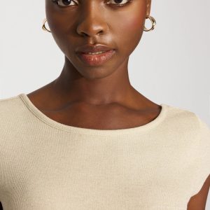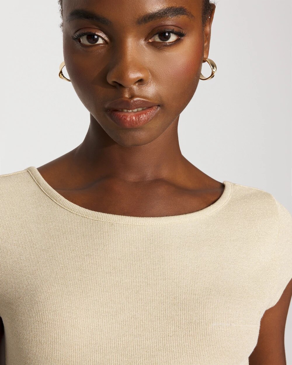 Brighten your day and your wardrobe with our latest WHBM FORME™ Ribbed Stretch top, made from a fabric with a metallic shine. A flattering scoop neckline is made more special by a deep scoop in back. Our ribbed fabric stretches and smooths your body, offering a flattering silhouette.