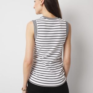 WHBM FORME™ Ribbed Stretch fabric stretches and smooths your body, offering a flattering silhouette. What also makes this crewneck tank stand apart is the ruching down the sides which gives it a hit of unexpected style. It’s finished with wide ribbed trim on neck and armholes. Wear it alone or layered under a jacket (but leave it unbuttoned so the ruching is visible.)