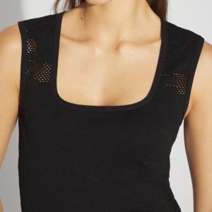 Introducing WHBM FORME™ Seamless, stylish pieces that give you the ultimate in comfort and flexibility and that hug the body for a clean, finished look. Reach for this floral jacquard square neck tank top for a feminine office look, ideal for wearing under a blazer or on its own. Wider tank shoulders cover up bra straps and the open work pattern is closed below the neckline for coverage.