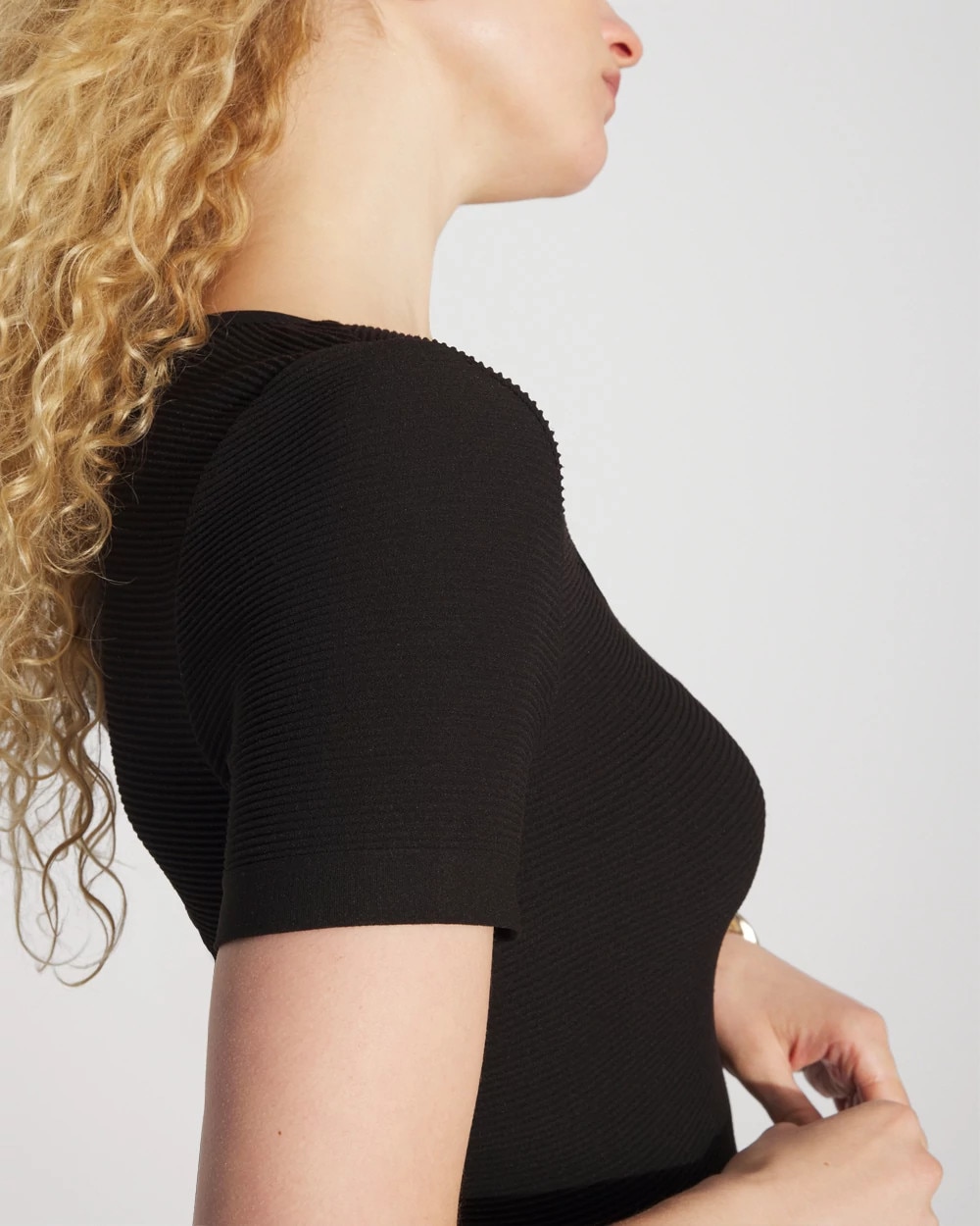 Made from an Ottoman ribbed knit fabric, this tee has no side seams giving you a flawless look. The scoop neckline has a binding finish and a wider band at the hem. This top is part of our new WHBM FORME™ Seamless collection, bringing you stylish pieces that give you the ultimate in comfort and flexibility, and that hug the body for a clean, finished look.