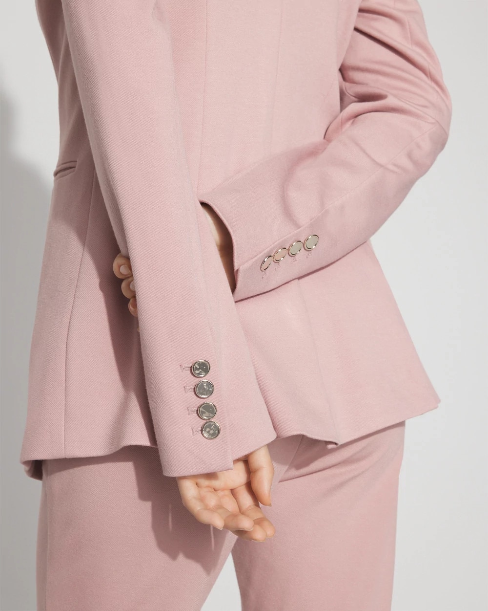 Our new WHBM® Two-Button Blazer has a longer length, front welt pockets and seaming details to shape you. Two silver hammered buttons in front add shine, while the functional button cuffs allow you to roll up the sleeves for styling options. Pair with our matching WHBM® Blake Bootcut Pant for a chic suit.